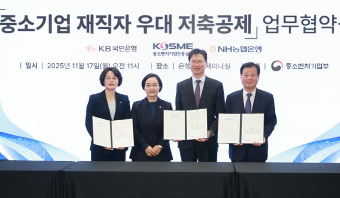 [È£³²´º½º¶óÀÎ = ¼ÀºÈ« ±âÀÚ] Áß¼Òº¥Ã³±â¾÷ºÎ(Àå°ü ÇѼº¼÷, ÀÌÇÏ Áß±âºÎ) ±¤ÁÖÀü³²Áö¹æÁß¼Òº¥Ã³±â¾÷û(ûÀå ¹ÚÁ¾Âù)¿¡ µû¸£¸é, 11¿ù 17ÀÏ ÀºÇàȸ°ü¿¡¼ NH³óÇùÀºÇà(ÀºÇàÀå °Å¿µ, ÀÌÇÏ ³óÇùÀºÇà), KB±¹¹ÎÀºÇà(ÀºÇàÀå ÀÌȯÁÖ, ÀÌÇÏ ±¹¹ÎÀºÇà), Áß¼Òº¥Ã³±â¾÷ÁøÈï°ø´Ü(ÀÌ»çÀå °¼®Áø, ÀÌÇÏ ÁßÁø°ø) °£ ¡¸Áß¼Ò±â¾÷ ÀçÁ÷ÀÚ ¿ì´ë ÀúÃà°øÁ¦¡¹(ÀÌÇÏ ¿ì´ë ÀúÃà°øÁ¦) Ãë±ÞÀºÇà È®´ë¸¦ À§ÇÑ ¾÷¹«Çù¾àÀ» ü°áÇß´Ù°í ¹àÇû´Ù.
