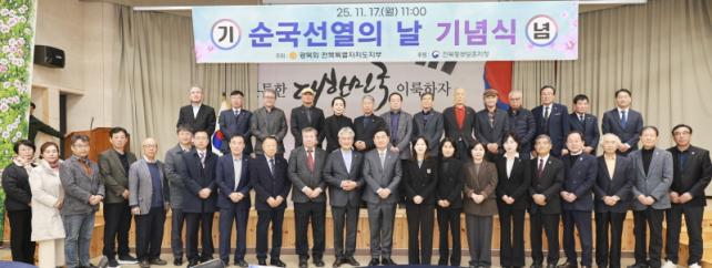 [È£³²´º½º¶óÀÎ = ¼ÀºÈ« ±âÀÚ] ÀüºÏƯº°ÀÚÄ¡µµ ±è°ü¿µ µµÁö»ç´Â 11¿ù 17ÀÏ ÀüºÏº¸ÈÆÈ¸°ü¿¡¼ ¿¸° Á¦86ȸ ¼ø±¹¼±¿ÀÇ ³¯ ±â³ä½Ä¿¡ Âü¼®ÇØ ¼ø±¹¼±¿µéÀÇ ¼þ°íÇÑ Èñ»ýÁ¤½ÅÀ» ±â¸®°í À¯°¡Á·°ú ±¤º¹È¸¿øµéÀ» À§·ÎÇß´Ù.