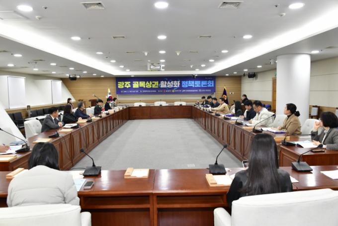 ±¤ÁÖ±¤¿ª½ÃÀÇȸ ¹ÚÇʼø ÀÇ¿ø°ú ±¤ÁÖ°æÁ¦ÁøÈï»ó»ýÀÏÀÚ¸®Àç´ÜÀº Áö³ 17ÀÏ ½ÃÀÇȸ ´ëȸÀǽǿ¡¼ ¡®±¤ÁÖ °ñ¸ñ»ó±Ç Ȱ¼ºÈ Á¤Ã¥Åä·Ðȸ¡¯¸¦ °³ÃÖÇß´Ù.