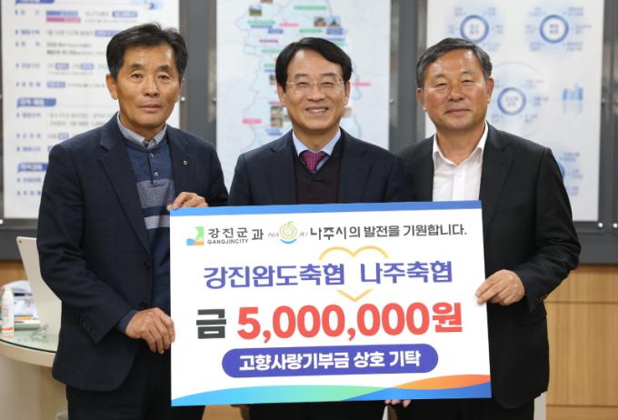 À̹ø »óÈ£ ±³Â÷±âºÎ´Â °Áø-³ªÁÖ µÎ Áö¿ªÀÇ ¿ìÀǸ¦ ´ÙÁö°í °íÇâ»ç¶û±âºÎ ¹®È Á¤ÂøÀ» À§ÇØ °Áø¿ÏµµÃàÇù°ú ³ªÁÖÃàÇù ÀÓÁ÷¿øÀÇ ¶æÀ» ¸ð¾Æ °¢ 500¸¸¿øÀÇ ±âºÎ¾×ÀÌ ¸¶·ÃµÆ´Ù.