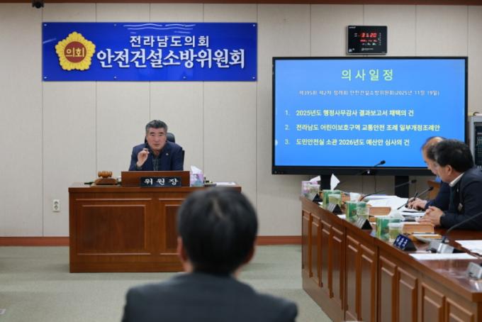 [È£³²´º½º¶óÀÎ = ¼ÀºÈ« ±âÀÚ] Àü¶ó³²µµÀÇȸ ¾ÈÀü°Ç¼³¼Ò¹æÀ§¿øÈ¸(À§¿øÀå ÃÖ¸í¼ö)´Â Á¦395ȸ Á¦2Â÷ Á¤·Êȸ ±â°£Áß 2025³â 11¿ù 19ÀÏ, µµ¹Î¾ÈÀü½Ç ¼Ò°ü 2026³â ¿¹»ê¾È ½ÉÀÇ °úÁ¤¿¡¼ Áö¹æÇÏõ À¯Áö°ü¸® »ç¾÷ ¿¹»êÀÇ °¨¾×¿¡ ´ëÇÑ ±íÀº ¿ì·Á¸¦ Ç¥¸íÇß´Ù.