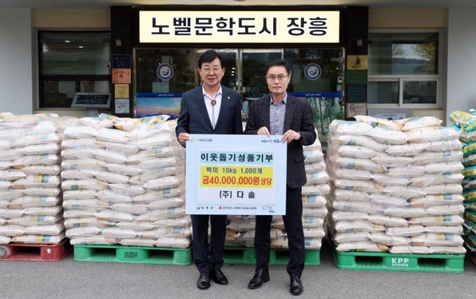 [È£³²´º½º¶óÀÎ = ¼ÀºÈ« ±âÀÚ] (ÁÖ)´Ù¼Ö(´ëÇ¥ ³ëÁ¤±Ù, ¹Úö¿Ï)Àº Áö³ 19ÀÏ, Áö¿ª»çȸ ³ª´® ½ÇõÀÇ ÀÏȯÀ¸·Î ¹é¹Ì 10kg 1,000Æ÷(¾à 4õ¸¸¿ø »ó´ç)¸¦ ÀåÈﱺ¿¡ ±âŹÇß´Ù.