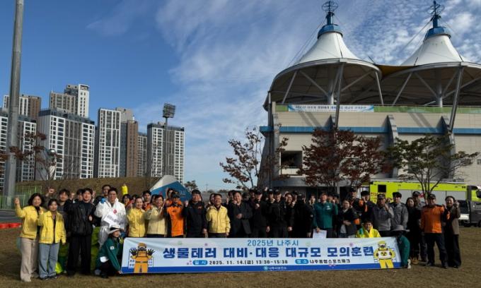 [È£³²´º½º¶óÀÎ = ¼ÀºÈ« ±âÀÚ] ³ªÁֽð¡ µå·ÐÀ» Ȱ¿ëÇÑ °¡»ó Å×·¯ »óȲÀ» ¼³Á¤ÇØ 8°³ ±â°ü°ú ÇÔ²² ½ÇÀü ¼öÁØÀÇ ¡®2025³â »ý¹°Å×·¯ ´ëºñ¡¤´ëÀÀ ´ë±Ô¸ð ÈÆ·Ã¡¯À» ³ªÁÖÁ¾ÇÕ½ºÆ÷Ã÷ÆÄÅ©¿¡¼ ÁøÇàÇß´Ù.