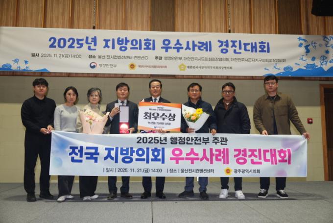 [È£³²´º½º¶óÀÎ = ¼ÀºÈ« ±âÀÚ] ±¤ÁÖ±¤¿ª½ÃÀÇȸ(ÀÇÀå ½Å¼öÁ¤)´Â ÇàÁ¤¾ÈÀüºÎ°¡ ÁÖ°üÇÑ ¡®2025³â Áö¹æÀÇȸ ¿ì¼ö»ç·Ê °æÁø´ëȸ¡¯¿¡¼ ¡®ÃÖ¿ì¼ö»ó¡¯À» ¼ö»óÇß´Ù.