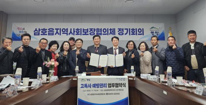 [È£³²´º½º¶óÀÎ = ¼ÀºÈ« ±âÀÚ] ¿µ¾Ï±º »ïÈ£À¾Áö¿ª»çȸº¸ÀåÇùÀÇü(°øµ¿À§¿øÀå ±è»ó°ï, ¼º¸íÁ¦)°¡. 19ÀÏ À¾ÇàÁ¤º¹Áö¼¾ÅÍ¿¡¼ ¿¬¼¼¿ìÀ¯ ¼³²´ë¸®Á¡(´ëÇ¥ ±è°æ¼ö)°ú ¡®°íµ¶»ç ¿¹¹æ°ü¸® ¾÷¹«Çù¾à¡¯À» ü°áÇß´Ù.