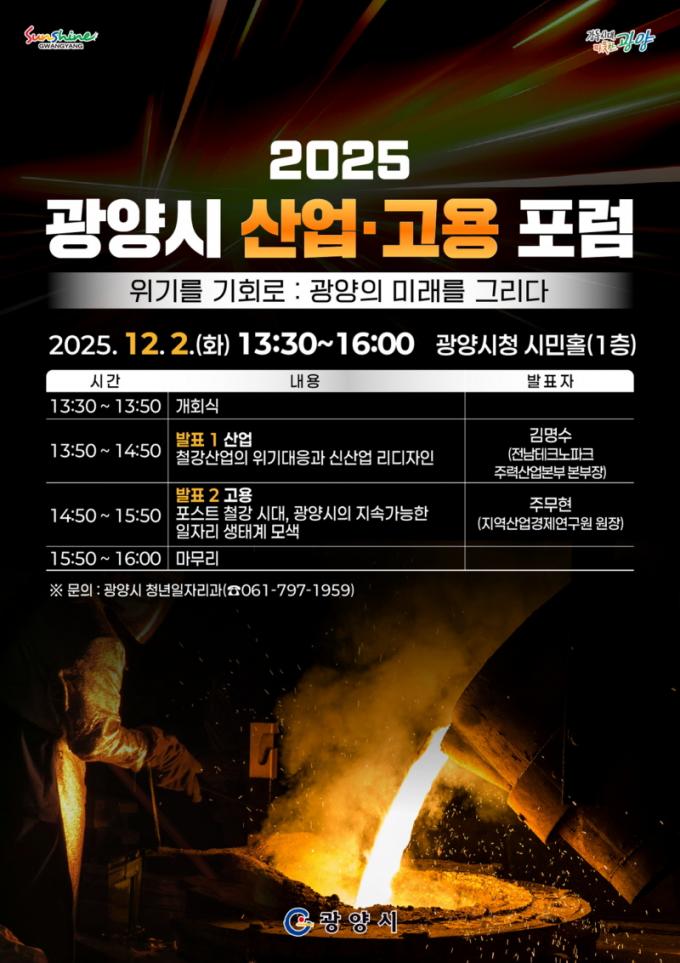 [È£³²´º½º¶óÀÎ = ¼ÀºÈ« ±âÀÚ] ±¤¾ç½Ã´Â ¿À´Â 12¿ù 2ÀÏ(È) ¿ÀÈÄ 1½Ã 30ºÐ, ½Ãû ½Ã¹ÎȦ¿¡¼ ¡®2025 ±¤¾ç½Ã »ê¾÷‧°í¿ë Æ÷·³¡¯À» °³ÃÖÇÑ´Ù°í ¹àÇû´Ù.