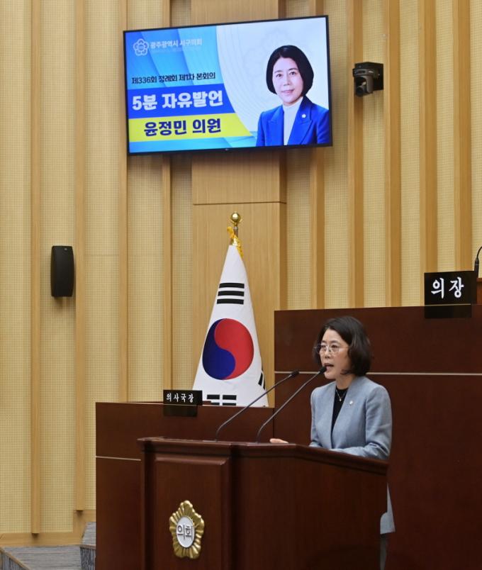 [È£³²´º½º¶óÀÎ = ¼ÀºÈ« ±âÀÚ] ±¤Áֽà ¼±¸ÀÇȸ À±Á¤¹Î ÀÇ¿ø(»ó¹«2µ¿¡¤¼Ã¢µ¿¡¤±ÝÈ£1¡¤2µ¿)Àº 25ÀÏ ¿¸° Á¦336ȸ Á¦2Â÷ Á¤·Êȸ º»È¸ÀÇ 5ºÐÀÚÀ¯¹ß¾ð¿¡¼ ¡°±¸¹ÎÀÇ ÆíÀÇ¿Í ¾ÈÀüÀÌ ÇàÁ¤ÀÇ ÃÖ¿ì¼± ±âÁØÀÌ µÇ¾î¾ß ÇÑ´Ù¡±°í °Á¶Çϸç, ¸¶¸¤°ø¿ø Àü±âÂ÷ ÃæÀü½Ã¼³ ÀÌÀü°ú µµ·Î °³¼³ Áö¿¬ ¹®Á¦¿¡ ´ëÇÑ ½Å¼ÓÇÑ ´ëÃ¥ ¸¶·ÃÀ» Ã˱¸Çß´Ù.
