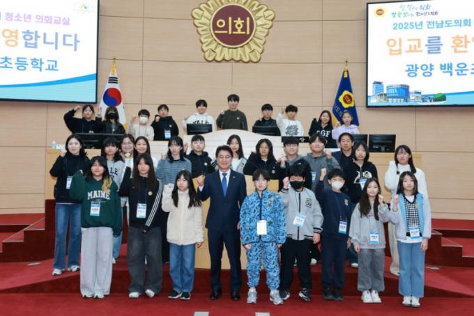 [È£³²´º½º¶óÀÎ = ¼ÀºÈ« ±âÀÚ] Àü¶ó³²µµÀÇȸ ±èÅÂ±Õ ÀÇÀå(´õºÒ¾î¹ÎÁÖ´ç, ±¤¾ç3)Àº Áö³ 20ÀÏ, Àü¶ó³²µµÀÇȸ º»È¸ÀÇÀå¿¡¼ ¿¸° ¡®2025³â Á¦24ȸ û¼Ò³â ÀÇȸ±³½Ç¡¯¿¡ Âü¼®ÇØ ±¤¾ç ¹é¿îÃʵîÇб³ Çлýµé°ú °ø°¨ÀÇ ½Ã°£À» °¡Á³´Ù.
