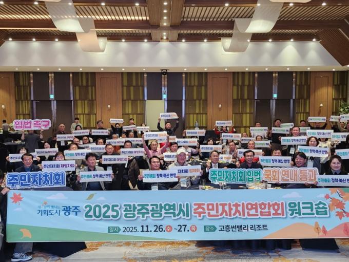 ±¤ÁÖ±¤¿ª½Ã(½ÃÀå °±âÁ¤)´Â 26~27ÀÏ ÀÌÆ²°£ °íÈï ÀÏ¿ø¿¡¼ 96°³ µ¿ ÁÖ¹ÎÀÚġȸ ȸÀå°ú À§¿ø, ½Ã‧±¸ ´ã´çÀÚ µî 100¿© ¸íÀÌ Âü¼®ÇÑ °¡¿îµ¥ ¡®2025 ÁÖ¹ÎÀÚÄ¡¿¬ÇÕȸ ¿öÅ©¼ó¡¯À» °³ÃÖÇß´Ù.