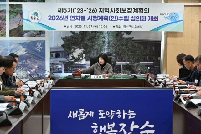 À̹ø ½ÉÀÇȸ´Â Àå¼ö±ºÁö¿ª»çȸº¸Àå´ëÇ¥ÇùÀÇü À§¿ø 14¸íÀÌ Âü¼®ÇÑ °¡¿îµ¥ °ø°øÀ§¿øÀåÀÎ ÃÖÈÆ½Ä Àå¼ö±º¼öÀÇ Àλ縻À» ½ÃÀÛÀ¸·Î ³ª±Ý·Ê ¹Î°£À§¿øÀåÀÇ ÁøÇà ¼Ó¿¡ Á¦5±â Áö¿ª»çȸº¸Àå°èȹÀÇ 2026³â ¼¼ºÎÃßÁø°èȹ Àü¹Ý¿¡ ´ëÇÑ ³íÀÇ¿Í ½ÉÀǰ¡ ÀÌ·ïÁ³´Ù.