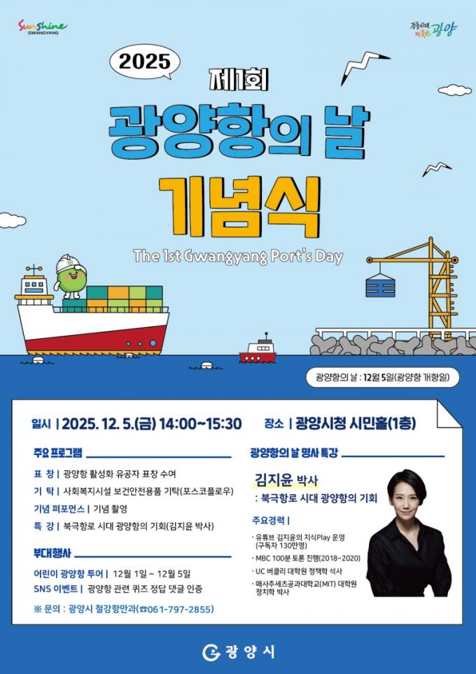 ¡®±¤¾çÇ×ÀÇ ³¯¡¯(12¿ù 5ÀÏ¡¤±¤¾çÇ× °³Ç×ÀÏ)Àº Ç׸¸»ê¾÷¿¡ ´ëÇÑ ½Ã¹ÎµéÀÇ ÀÌÇØ¿Í °ü½ÉÀ» ³ôÀ̱â À§ÇØ ÁöÁ¤µÈ ±â³äÀÏÀÌ´Ù. ±¤¾çÇ×Àº ¼öÃâÀÔ ¹°µ¿·® ±¹³» 1À§, ÃÑ ¹°µ¿·® 2À§ Ç׸¸À¸·Î Áö¿ª°æÁ¦¿¡¼ ÁßÃßÀû ¿ªÇÒÀ» Çϰí ÀÖÀ¸³ª, ö°»ê¾÷¿¡ ºñÇØ ½Ã¹Î ü°¨µµ°¡ ³·´Ù´Â ÀǰßÀÌ À̾îÁ® ¿Ô´Ù. ÀÌ¿¡ ±¤¾ç½Ã´Â ±¤¾çÇ×»ó»ýÇù·ÂÇùÀÇȸ ³íÀǸ¦ °ÅÃÄ Áö³ 2¿ù ¡®±¤¾çÇ×ÀÇ ³¯¡¯À» °ø½Ä ÁöÁ¤Çß´Ù.