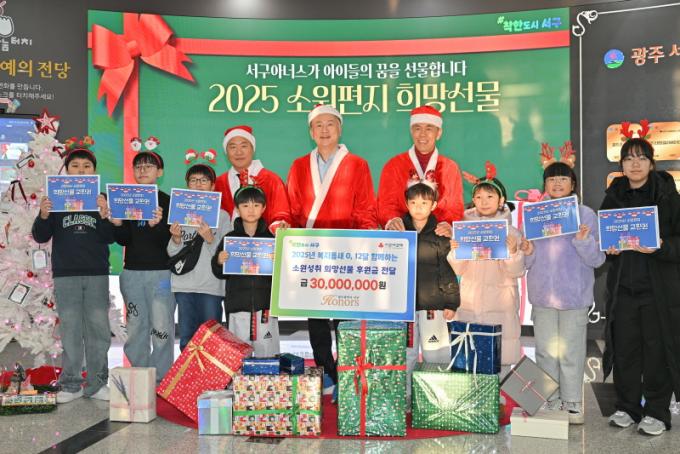 [È£³²´º½º¶óÀÎ = ¼ÀºÈ« ±âÀÚ] ±¤ÁÖ±¤¿ª½Ã ¼±¸ °í¾× ±âºÎÀÚ ¸ðÀÓ ¡®¼±¸¾Æ³Ê½º¡¯°¡ 12¿ù »êŸ°¡ µÇ¾î ¾ÆÀ̵鿡°Ô Ưº°ÇÑ ¼±¹°À» ÀüÇÑ´Ù. ¼±¸´Â 3ÀÏ ¼±¸¾Æ³Ê½º·ÎºÎÅÍ Áö¿ª ¾Æµ¿‧û¼Ò³âÀ» À§ÇÑ ¡®¼Ò¿ø¼ºÃë Èñ¸Á¼±¹°¡¯ ÈÄ¿ø±Ý 3000¸¸¿øÀ» Àü´Þ¹Þ¾Ò´Ù°í ¹àÇû´Ù.