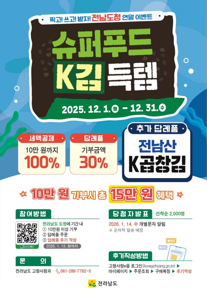 [È£³²´º½º¶óÀÎ = ¼ÀºÈ« ±âÀÚ] Àü¶ó³²µµ°¡ ¿¬¸»À» ¸Â¾Æ °íÇâ»ç¶û±âºÎÁ¦ Âü¿© È®´ë¿Í Áö¿ª ¼ö»ê¹° ¼Òºñ ÃËÁøÀ» À§ÇØ ½´ÆÛǪµå ÄÉÀÌ(K)±èÀ» Ȱ¿ëÇÑ ´ë±Ô¸ð ¿¬¸» À̺¥Æ®¸¦ ÁøÇàÇÑ´Ù.