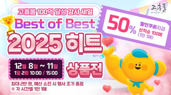 [È£³²´º½º¶óÀÎ = ¼ÀºÈ« ±âÀÚ] °íÈﱺ(±º¼ö °ø¿µ¹Î)Àº Á÷¿µ ¿Â¶óÀÎ ³ó¼öÃàÆ¯»ê¹° ¼îÇθô ¡®°íÈï¸ô¡¯ÀÌ ´©Àû ¸ÅÃâ 100¾ï ¿ø µ¹ÆÄ¸¦ ±â³äÇØ ¿À´Â 1¿ù 8ÀϺÎÅÍ 11ÀϱîÁö ¡®100¾ï ´Þ¼º °¨»ç ¼¼ÀÏ–2025 Best of Best¡¯ ±âȹÀüÀ» ÁøÇàÇÑ´Ù°í ¹àÇû´Ù.