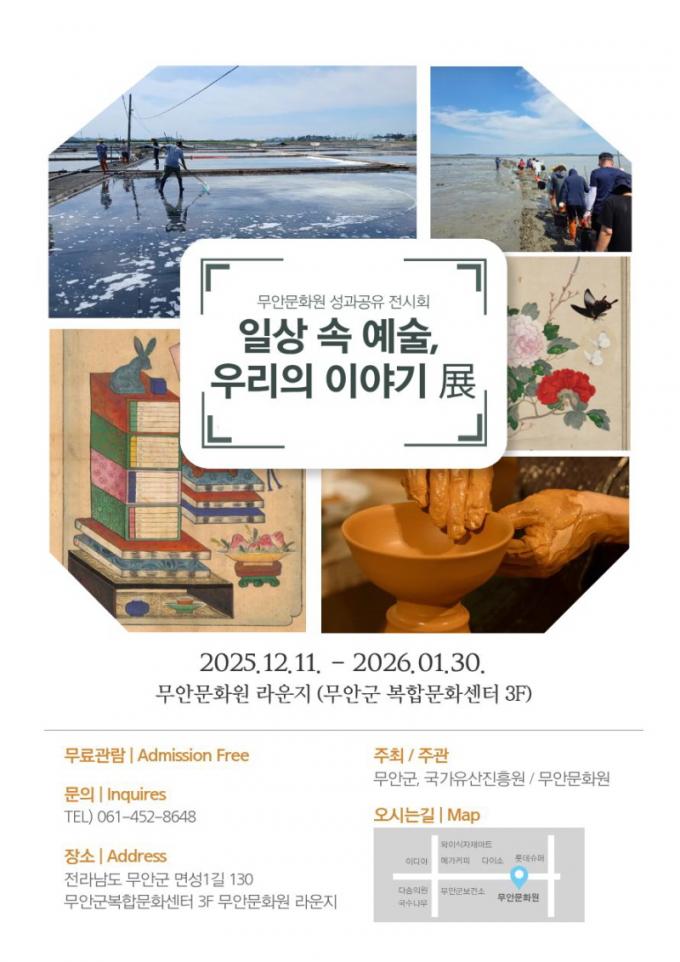 [È£³²´º½º¶óÀÎ = ¼ÀºÈ« ±âÀÚ] ¹«¾È¹®È¿øÀº ¿À´Â 12¿ù 11ÀÏ(¸ñ)ºÎÅÍ 2026³â 1¿ù 30ÀÏ(±Ý)±îÁö ¹«¾È±º º¹ÇÕ¹®È¼¾ÅÍ 3Ãþ ¹«¾È¹®È¿ø ¶ó¿îÁö º¹µµ¿¡¼ 2025³â ¼º°ú°øÀ¯ Àü½Ãȸ ¡®ÀÏ»ó ¼Ó ¿¹¼ú, ¿ì¸®ÀÇ À̾߱â î÷¡¯À» °³ÃÖÇÑ´Ù°í ¹àÇû´Ù.
