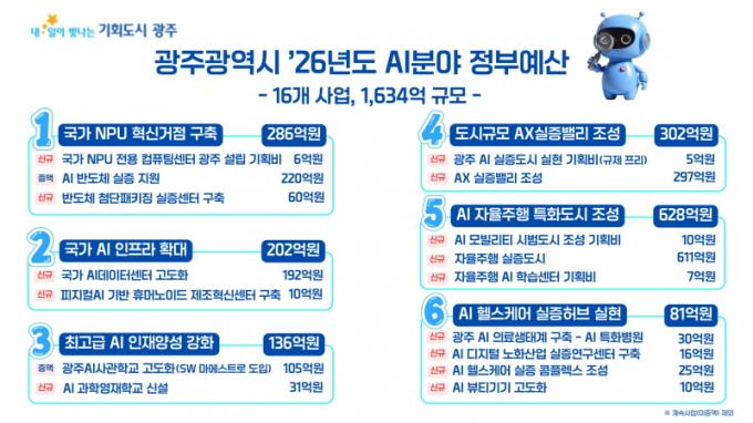 ƯÈ÷ ¡ã±¹°¡ NPU(½Å°æ¸Áó¸®ÀåÄ¡) Àü¿ë ÄÄÇ»ÆÃ¼¾ÅÍ Å¸´ç¼º ¿¬±¸(6¾ï¿ø) ¡ã±¤ÁÖ AI ½ÇÁõµµ½Ã ½ÇÇö »ç¾÷ ±âȹ(5¾ï¿ø) ¡ãÀÚÀ²ÁÖÇà µµ½Ã ´ÜÀ§ ½ÇÁõ(611¾ï¿ø) ¡ãAI ƯȺ´¿ø Á¶¼º(30¾ï¿ø) µî ±¹°¡ Àü·« ºÐ¾ßÀÎ ÀÚÀ²ÁÖÇࡤ¹ÝµµÃ¼¡¤ÇコÄÉ¾î ½ÇÁõ»ç¾÷¿¡ Àü·Ê ¾ø´Â ±Ô¸ðÀÇ ¿¹»êÀÌ ¹Ý¿µµÅ ±¤ÁÖ°¡ ±¹°¡ AX Çõ½ÅÀ» ¼±µµÇÒ °ÅÁ¡À¸·Î ±ÞºÎ»óÇÒ °ÍÀ¸·Î ÁÖ¸ñ¹Þ°í ÀÖ´Ù.