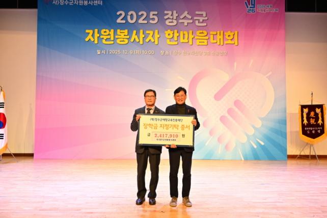 [È£³²´º½º¶óÀÎ = ¼ÀºÈ« ±âÀÚ] Àå¼ö±ºÀº 9ÀÏ ¿¸° ¡®Àå¼ö±º ÀÚ¿øºÀ»çÀÚ ÇѸ¶À½´ëȸ¡¯¿¡¼ Àå¼ö±ºÀÚ¿øºÀ»ç¼¾ÅͰ¡ (Àç)Àå¼ö±º¾ÖÇâ±³À°ÁøÈïÀç´Ü¿¡ ÀåÇбÝÀ» ±âŹÇß´Ù°í ¹àÇû´Ù.