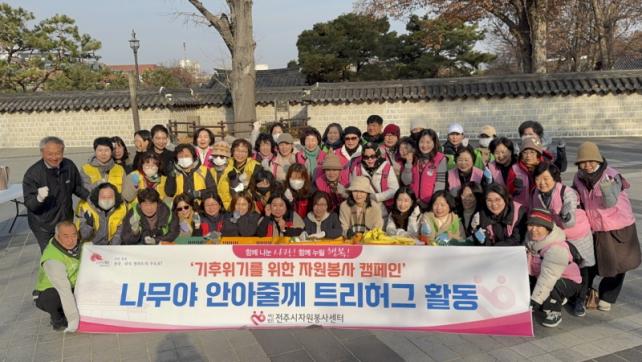 [È£³²´º½º¶óÀÎ = ¼ÀºÈ« ±âÀÚ] ÀüÁÖ½ÃÀÚ¿øºÀ»ç¼¾ÅÍ(ÀÌ»çÀå ÃÖÀÌõ)´Â 10ÀÏ ÀüÁÖÁö¿ª ÀÚ¿øºÀ»çÀÚµé°ú ÇÔ²² ÀüÁÖÇÑ¿Á¸¶À»¿¡ ÀÖ´Â ³ª¹«¿¡ ÇüÇü»ö»öÀÇ ³ª¹« ¿ÊÀ» ÀÔÈ÷´Â ¡®³ª¹«¾ß ¾È¾ÆÁÙ°Ô! Æ®¸®Çã±×¡¯ Ȱµ¿À» ÁøÇàÇß´Ù.