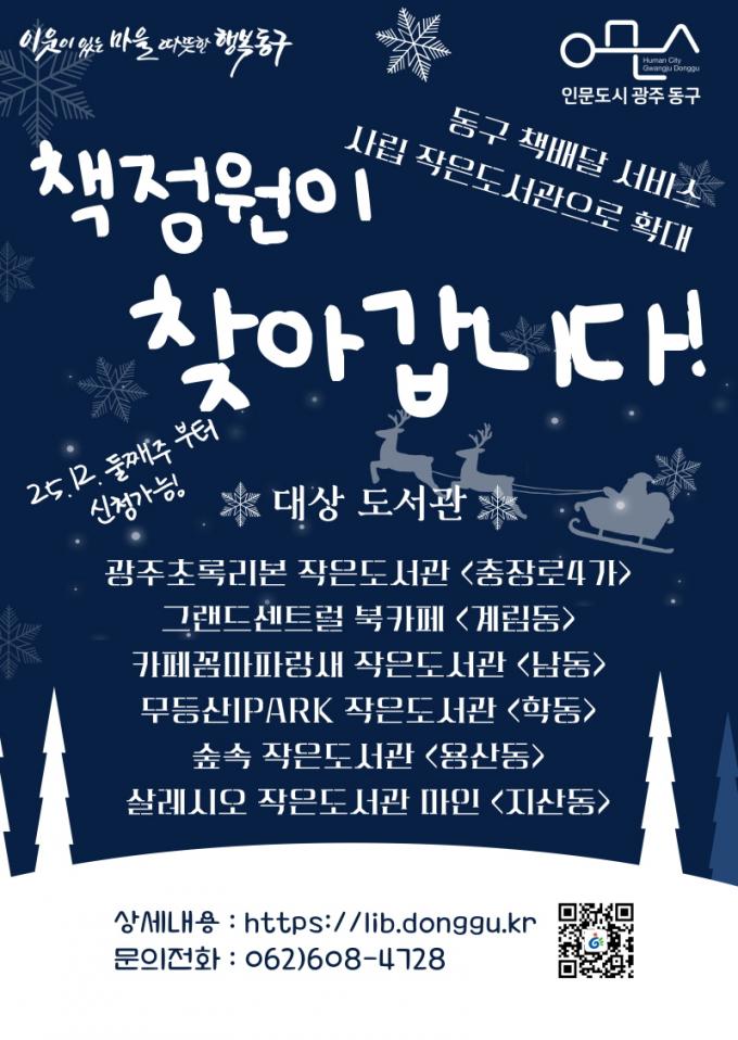 À̹ø¿¡ Ã¥¹è´Þ ¼ºñ½º°¡ »õ·Ó°Ô È®´ëµÇ´Â °÷Àº ¡ã±¤ÁÖÃʷϸ®º»ÀÛÀºµµ¼°ü(ÃæÀå·Î58¹ø±æ 5, 2Ãþ) ¡ã±×·£µå¼¾Æ®·² ºÏÄ«Æä(±×·£µå¼¾Æ®·² ¾ÆÆÄÆ® ³» ÀÛÀº µµ¼°ü) ¡ã¹«µî»ê¾ÆÀÌÆÄÅ© ÀÛÀº µµ¼°ü(¹«µî»ê¾ÆÀÌÆÄÅ© ¾ÆÆÄÆ® ³» ÀÛÀº µµ¼°ü) ¡ã»ì·¹½Ã¿À ÀÛÀº µµ¼°ü ¸¶ÀÎ(»ì·¹½Ã¿À¿©ÀÚ°íµîÇб³ µÚÆí, Á¶¼±´ëÇб³ ¿©ÀÚ°íµîÇб³ ¸ÂÀºÆí) ¡ã½£¼Ó ÀÛÀº µµ¼°ü(±¤ÁÖ¿ë»êLH1´ÜÁö ¾ÆÆÄÆ® Áֹΰøµ¿½Ã¼³) ¡ãÄ«Æä²Ä¸¶ ÆÄ¶û»õ ÀÛÀº µµ¼°ü(±¹¸³¾Æ½Ã¾Æ¹®ÈÀü´ç ÀαÙ, ÆÄ¶û»õºôµù 1¡¤2Ãþ) µî 6°³¼Ò·Î, ´õ ¸¹Àº ÁÖ¹ÎÀÌ Ã¥ ¹è´Þ ¼ºñ½º¸¦ ÀÌ¿ëÇÒ ¼ö ÀÖ°Ô µÆ´Ù.