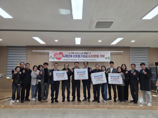 [È£³²´º½º¶óÀÎ = ¼ÀºÈ« ±âÀÚ] °íⱺ °íâÀ¾ 4°³ ´Üü(±â°ü»çȸ´ÜüÇù(ȸÀå À̱æ¼ö), ÀÌÀå´ÜÇù(ȸÀå ¹®µ¿ÁÖ), ÁÖ¹ÎÀÚÄ¡À§(À§¿øÀå ¼ºÈ«Á¦), Áö¿ª»çȸº¸ÀåÇù(À§¿øÀå ÀÓÁø¿ë))°¡ ¾î·Á¿î ÀÌ¿ôÀ» µ½±â À§ÇÑ ¼º±Ý 620¸¸¿øÀ» ±âŹÇß´Ù.