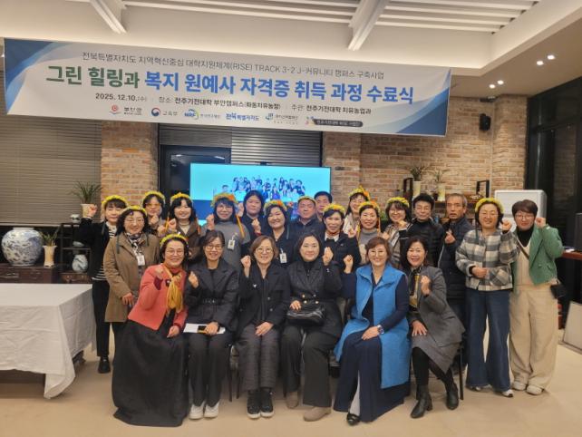 [È£³²´º½º¶óÀÎ = ¼ÀºÈ« ±âÀÚ] ÀüÁÖ±âÀü´ëÇб³ RISE»ç¾÷´Ü(´ÜÀå Á¶´öÇö)Àº Áö³ 10ÀÏ ºÎ¾È±º¹ÎÀ» ´ë»óÀ¸·Î ¿î¿µÇÑ J-Ä¿¹Â´ÏƼ Ä·ÆÛ½º ±³À°°úÁ¤ ¡®±×¸°Èú¸µ°ú º¹Áö¿ø¿¹»ç ÀÚ°ÝÁõ Ãëµæ°úÁ¤¡¯À» ¼ºÈ²¸®¿¡ ¸¶Ä¡°í ¼ö·á½ÄÀ» °³ÃÖÇß´Ù.