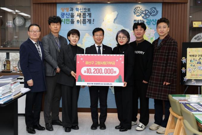 Áö³ 27ÀÏ ±¸Ã» 1Ãþ Ä«ÆäȦ´õ¿¡¼ ÀÏÀÏ ¸í¿¹Á¡ÀåÀ» Çß´ø Á¤¼±±³ ´ë¸íǪµå½Ã½ºÅÛ¢ß ´ëÇ¥°¡ ¿¬°èÇÑ 49¸íÀÇ ±â¾÷ÀÎÀÌ ±¤»ê±¸¿¡ °íÇâ»ç¶û±âºÎ±Ý ÃÑ 1,020¸¸ ¿øÀ» Àü´ÞÇß´Ù.