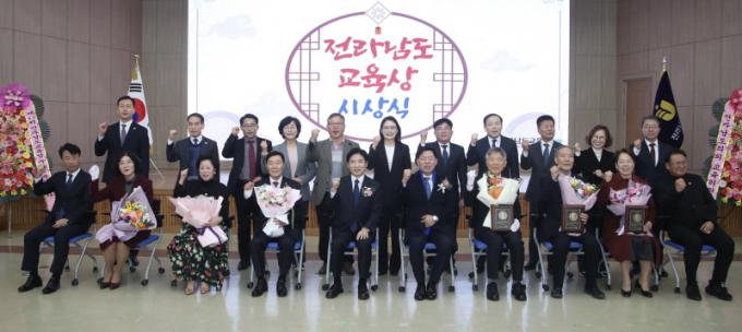 [È£³²´º½º¶óÀÎ = ¼ÀºÈ« ±âÀÚ] Àü¶ó³²µµ±³À°Ã»(±³À°°¨ ±è´ëÁß)ÀÌ 12ÀÏ Ã»»ç ´ëȸÀǽǿ¡¼ ¡®Á¦45ȸ Àü¶ó³²µµ±³À°»ó ½Ã»ó½Ä¡¯À» °®°í ¼ö»óÀÚ·Î ¼±Á¤µÈ 5¸í¿¡°Ô ǥâÀå°ú ºÎ»óÀ» ¼ö¿©Çß´Ù.