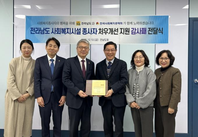 [È£³²´º½º¶óÀÎ = ¼ÀºÈ« ±âÀÚ] Àü¶ó³²µµ´Â »çȸº¹Áö½Ã¼³ Á¾»çÀÚ Ã³¿ì°³¼±¿¡ ±â¿©ÇÑ °ø·Î¸¦ ÀÎÁ¤¹Þ¾Æ Çѱ¹»çȸº¹Áö°øÁ¦È¸·ÎºÎÅÍ °¨»çÆÐ¸¦ ¹Þ¾Ò´Ù°í ¹àÇû´Ù.