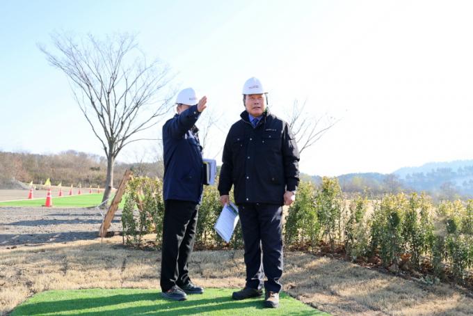 [È£³²´º½º¶óÀÎ = ¼ÀºÈ« ±âÀÚ] ±è»ê ¹«¾È±º¼ö°¡ Áö³ 12ÀÏ ¹«¾È±º ´Ã¾îÁö ÆÄÅ©°ñÇÁÀå Á¶¼º»ç¾÷ ÇöÀå¿¡¼ °ø»ç ÁøÇà »óȲÀ» Á¡°ËÇÏ°í °ü°èÀÚµéÀ» °Ý·ÁÇß´Ù.