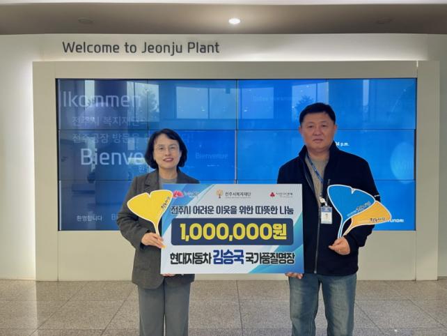 [È£³²´º½º¶óÀÎ = ¼ÀºÈ« ±âÀÚ] Çö´ëÀÚµ¿Â÷ ÀüÁÖ°øÀå ±è½Â±¹ ±¹°¡Ç°Áú¸íÀåÀº 16ÀÏ ÀüÁֽú¹ÁöÀç´Ü(ÀÌ»çÀå À±¹æ¼·)¿¡ ¾î·Á¿î ÀÌ¿ôÀ» À§ÇÑ ¼º±Ý 100¸¸ ¿øÀ» ±âŹÇß´Ù.