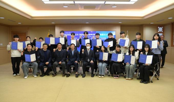 [È£³²´º½º¶óÀÎ = ¼ÀºÈ« ±âÀÚ] (Àç)ºû°íÀ»ÀåÇÐÀç´Ü(ÀÌ»çÀå °±âÁ¤ ±¤ÁÖ±¤¿ª½ÃÀå)Àº 17ÀÏ ½Ãû ºñÁî´Ï½º·ë¿¡¼ ¡®2025³â ÇϹݱ⠺û°íÀ»ÀåÇÐÀç´Ü ÀåÇÐÁõ¼ ¼ö¿©½Ä¡¯À» ¿°í, ´ëÇ¥·Î Âü¼®ÇÑ Çлý 20¸í¿¡°Ô ÀåÇÐÁõ¼¸¦ Àü´ÞÇß´Ù.