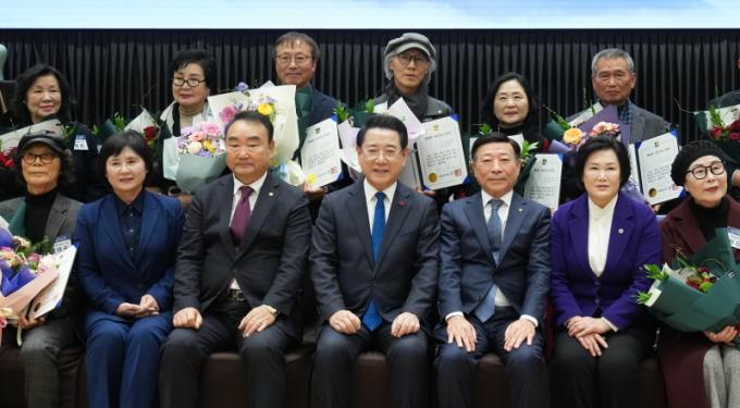 [È£³²´º½º¶óÀÎ = ¼ÀºÈ« ±âÀÚ] Àü¶ó³²µµ´Â 17ÀÏ ¹«¾È ³²¾Ç ½ºÄ«ÀÌ¿þµùÄÁº¥¼Ç¿¡¼ Áö¿ª ¹®È¿¹¼ú ¹ßÀü¿¡ Å©°Ô ±â¿©ÇÑ °ø·ÎÀÚ 4¸í¿¡°Ô Àü³²µµ ¹®È»óÀ», ¿¹Çâ Àü³²ÀÇ ¸í¼ºÀ» µå³ôÀÎ ¿¹¼úÀÎ 12¸í¿¡°Ô Àü³²µµ ¸í¿¹¿¹¼úÀÎ ÁöÁ¤¼¸¦ ¼ö¿©Çß´Ù.