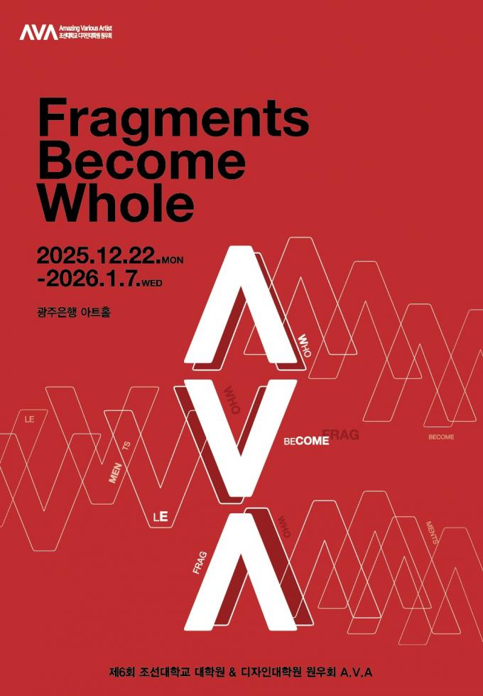 [È£³²´º½º¶óÀÎ = ¼ÀºÈ« ±âÀÚ] Á¶¼±´ëÇб³ ´ëÇпø & µðÀÚÀδëÇпø ¿ø¿ìȸ A.V.A(Amazing Various Artist)°¡ ÁÖÃÖ¡¤ÁÖ°üÇÏ´Â ¿©¼¸ ¹øÂ° ±×·ì Àü½Ã ¡´Fragments Become Whole¡µ°¡ 2025³â 12¿ù 22ÀÏ(¿ù)ºÎÅÍ 2026³â 1¿ù 7ÀÏ(¼ö)±îÁö ±¤ÁÖÀºÇà ¾ÆÆ®È¦¿¡¼ ¿¸°´Ù.
