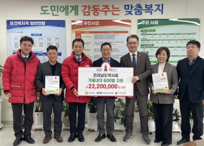 [È£³²´º½º¶óÀÎ = ¼ÀºÈ« ±âÀÚ] Àü¶ó³²µµ´Â 23ÀÏ Àü³²µµ¾à»çȸ·ÎºÎÅÍ ³ëÀκ¹Áö½Ã¼³°ú µ¹º½ ¾î¸£½Å¿¡°Ô Àü´ÞÇÒ 2õ200¸¸ ¿ø »ó´çÀÇ °Ü¿ï ³»ÀÇ 600¹úÀ» ±âŹ¹Þ¾Æ »çȸº¹Áö°øµ¿¸ð±Ýȸ¿¡ Àü´ÞÇß´Ù°í ¹àÇû´Ù.