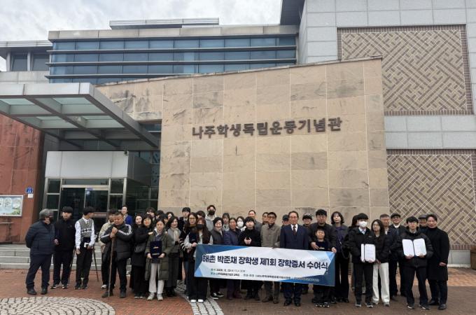 [È£³²´º½º¶óÀÎ = ¼ÀºÈ« ±âÀÚ] ³ªÁÖÇлýµ¶¸³¿îµ¿ÀÇ ¼þ°íÇÑ Á¤½ÅÀ» °è½ÂÇϰí Áö¿ª ÀÎÀç ¾ç¼ºÀ» Áö¿øÇϱâ À§ÇØ ½Å¼³µÈ ¡®ÇØÃÌ ¹ÚÁØÃ¤ ÀåÇбݡ¯ÀÌ Ã¹ °á½ÇÀ» º¸¸ç Áö¿ª »çȸ¿¡ ±³À° ³ª´®ÀÇ Àǹ̸¦ ´õÇϰí ÀÖ´Ù.