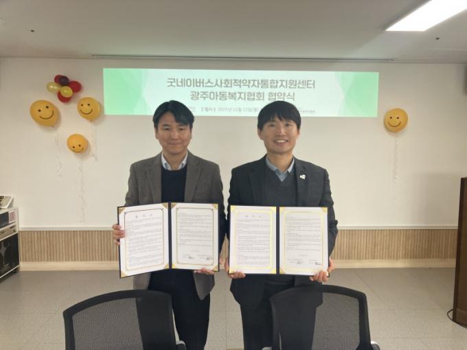 (»çÁøÁ¦°ø=±Â³×À̹ö½º »çȸÀû¾àÀÚÅëÇÕÁö¿ø¼¾ÅÍ)±Â³×À̹ö½º»çȸÀû¾àÀÚÅëÇÕÁö¿ø¼¾ÅÍ(º»ºÎÀå °âÀÓ ¹èÁØ¿)¿Í ±¤Á־Ƶ¿º¹ÁöÇùȸ(ÇùȸÀå ÃÖ¸ð¼¼)´Â ¿¬¸»À» ¸Â¾Æ Áö¿ª ³» ½Ã¼³ ¾Æµ¿ÀÇ ¾ÈÁ¤ÀûÀÎ º¸È£¿Í º¹Áö ÁõÁøÀ» À§ÇÑ ¾÷¹«Çù¾à(MOU)À» ü°áÇϰí, ½Ã¼³ ¾Æµ¿À» À§ÇÑ ¼ºÅºÀý ¼±¹° Àü´Þ½ÄÀ» ÇÔ²² ÁøÇàÇß´Ù°í 26ÀÏ(±Ý) ¹àÇû´Ù.