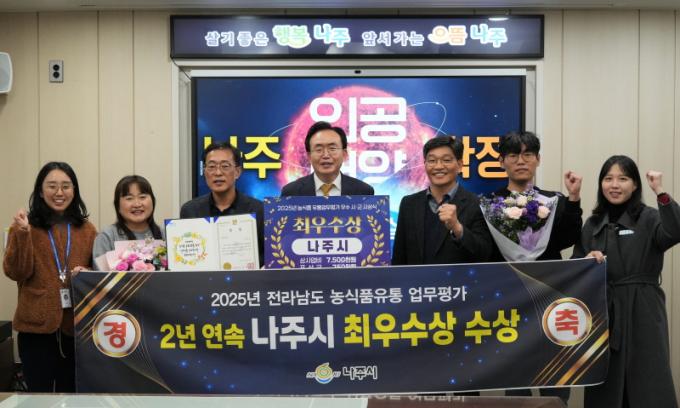 ³ªÁÖ½Ã(½ÃÀå À±º´ÅÂ)´Â Àü¶ó³²µµ°¡ ÁÖ°üÇÑ ¡®2025³â Àü¶ó³²µµ ³ó½ÄǰÀ¯Åë ¾÷¹«Æò°¡¡¯¿¡¼ 2³â ¿¬¼Ó ÃÖ¿ì¼ö»óÀ» ¹Þ¾Ò´Ù°í 26ÀÏ ¹àÇû´Ù.
