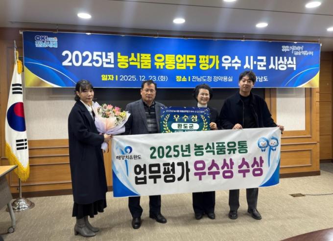 [È£³²´º½º¶óÀÎ = ¼ÀºÈ« ±âÀÚ] ¿Ïµµ±ºÀÌ Àü¶ó³²µµ ÁÖ°ü ¡¸2025³âµµ ³ó½Äǰ À¯Åë ¾÷¹« Æò°¡¡¹¿¡¼ ¡®¿ì¼ö»ó¡¯À» ¼ö»óÇß´Ù.