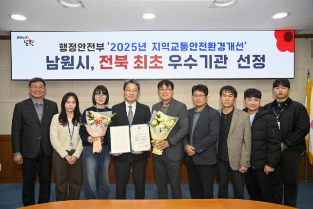 [È£³²´º½º¶óÀÎ = ÃÖÀç¼± ±âÀÚ] ³²¿ø½Ã(½ÃÀå ÃÖ°æ½Ä)°¡ ÇàÁ¤¾ÈÀüºÎ ÁÖ°ü ¡®2025³â Áö¿ª±³Åë¾ÈÀüȯ°æ°³¼±¡¯ Æò°¡¿¡¼ Àü±¹ ¿ì¼ö ÁöÀÚü·Î ¼±Á¤µÇ¾î ÇàÁ¤¾ÈÀüºÎ Àå°ü ǥâÀ» ¼ö»óÇß´Ù.
