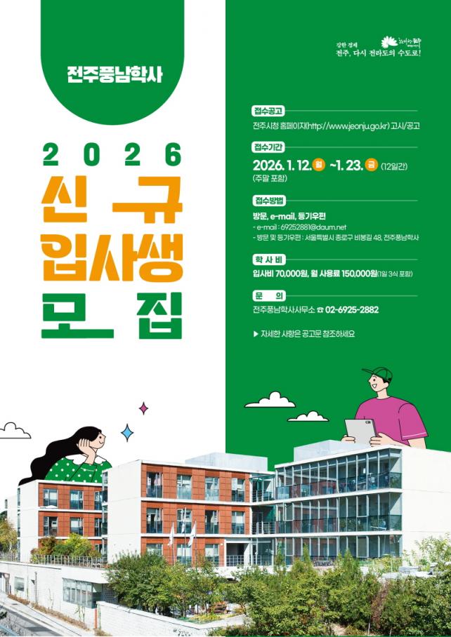 [È£³²´º½º¶óÀÎ = ¼ÀºÈ« ±âÀÚ] ÀÎÀç ¾ç¼ºÀÇ ¿ä¶÷ÀÎ ÀüÁֽà ¼¿ïÀåÇм÷ ÀüÁÖdz³²Çлç(¼ÒÀå ÃÖµÎÇü)°¡ 2026³âµµ ½Å±ÔÀÔ»ç»ýÀ» ¸ðÁýÇÑ´Ù.