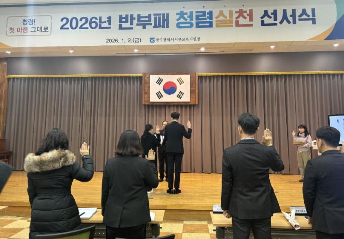 ±¤ÁÖµ¿ºÎ±³À°Áö¿øÃ»Àº À̳¯ ´ëȸÀǽǿ¡¼ ¸ðµç Á÷¿øÀÌ ¡®Ã»·Å ¼¾à¼¡¯¸¦ ÀÛ¼ºÇϸç Åõ¸íÇÑ Á÷¹« ¼öÇàÀ» ´ÙÁüÇß´Ù.