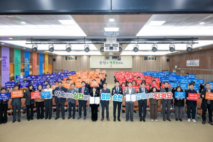 [È£³²´º½º¶óÀÎ = ¼ÀºÈ« ±âÀÚ] ¼øÃµ½Ã´Â 2ÀÏ ´ëȸ½Ç¿¡¼ ½Ã °øÁ÷ÀÚµéÀÌ Âü¼®ÇÑ °¡¿îµ¥ 2026³â ½Ã¹«½ÄÀ» ¿°í »õÇØ ½ÃÁ¤ ¿î¿µ ¹æÇâ°ú ºñÀüÀ» °øÀ¯Çß´Ù.