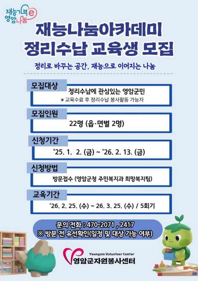 [È£³²´º½º¶óÀÎ = ¼ÀºÈ« ±âÀÚ] ¿µ¾Ï±ºÀº ±º¹ÎÀÇ Àç´É±âºÎ ¿ª·®À» °ÈÇϰí Áö¿ª»çȸ µ¹º½À» È®´ëÇϱâ À§ÇØ ¡®2026³â Àç´É³ª´® ¾ÆÄ«µ¥¹Ì(Á¤¸®¼ö³³ °úÁ¤)¡¯Âü¿©ÀÚ¸¦ ¸ðÁýÇÑ´Ù.