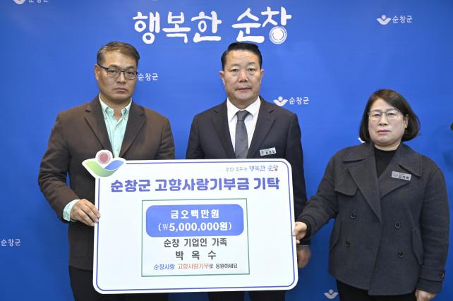[È£³²´º½º¶óÀÎ = ¼ÀºÈ« ±âÀÚ] ¼øÃ¢±ºÀº 6ÀÏ ¼øÃ¢ ±â¾÷ÀÎ °¡Á· ¹Ú¿Á¼ö ¾¾°¡ ¼øÃ¢±º¿¡ °íÇâ»ç¶û±âºÎ±Ý 500¸¸¿øÀ» ±âŹÇß´Ù°í ¹àÇû´Ù.