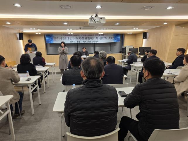 ÀüÁֽà µ¿ Áö¿ª»çȸº¸ÀåÇùÀÇü ¿¬ÇÕȸ´Â 6ÀÏ ÀüÁÖ¼ÒÅëÇù·Â¼¾ÅÍ ÄÁÆÛ·±½º·ë¿¡¼ 35°³ µ¿ À§¿øÀåµéÀÌ Âü¼®ÇÑ °¡¿îµ¥ ¡®2026³âµµ Á¦1Â÷ Á¤±âÃÑȸ¡¯¸¦ °³ÃÖÇß´Ù.