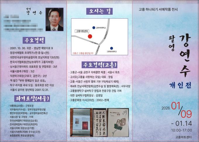 [È£³²´º½º¶óÀÎ = ¼ÀºÈ« ±âÀÚ] °íÈﱺ(±º¼ö °ø¿µ¹Î)Àº ¿À´Â 1¿ù 9ÀϺÎÅÍ 14ÀϱîÁö °íÈï¾ÆÆ®¼¾ÅÍ¿¡¼ ¡®°íÈï ÇϳªµÇ±â ¼¿¹ ÀÛǰ Àü½Ãȸ¡¯¸¦ °³ÃÖÇÑ´Ù°í ¹àÇû´Ù.