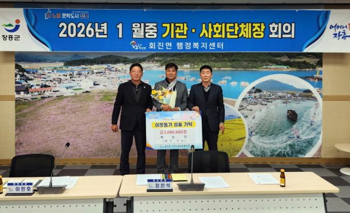 [È£³²´º½º¶óÀÎ = ¼ÀºÈ« ±âÀÚ] ÀåÈﱺ ȸÁø¸é Áö¿ª»çȸº¸ÀåÇùÀÇü(°øµ¿À§¿øÀå ÀåÂù¼®¡¤À̹ÎÈ£)¿¡ ÀÌ¿ôµ½±â ¼º±Ý ±âºÎÇà·ÄÀÌ À̾îÁö°í ÀÖ´Ù.