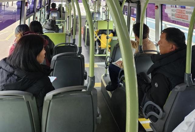 À̳¯ ±³Åë°ú Á÷¿øµéÀº ¹ö½º¸¦ ÀÌ¿ëÇÏ´Â ½Ã¹Îµé°ú ÀÚ¿¬½º·´°Ô ´ëȸ¦ ³ª´©¸ç ÇöÀåÀÇ ¹ÝÀÀÀ» »ìÆñ´Ù. ½Ã¹ÎµéÀº ¹èÂ÷ °£°Ý Á¶Á¤, ³ë¼± ÀÌ¿ëÀÇ ÆíÀǼº, ½Â¡¤ÇÏÂ÷ ½Ã ¾ÈÀü ȯ°æ µî Æò¼Ò ´À²¼´ø ´Ù¾çÇÑ ¾Ö·Î»çÇ×À» °¡°¨ ¾øÀÌ Àü´ÞÇß´Ù.