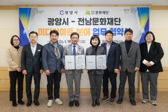 [È£³²´º½º¶óÀÎ = ¼ÀºÈ« ±âÀÚ] ±¤¾ç½Ã´Â Áö³ 1¿ù 19ÀÏ ±¤¾ç½Ãû ¸¸³²½Ç¿¡¼ Àü¶ó³²µµ¹®ÈÀç´Ü°ú ¹Ìµð¾î¾ÆÆ® ±â¹Ý ¹®È¿¹¼ú Çù·ÂÀ» À§ÇÑ ¾÷¹«Çù¾àÀ» ü°áÇß´Ù°í ¹àÇû´Ù.