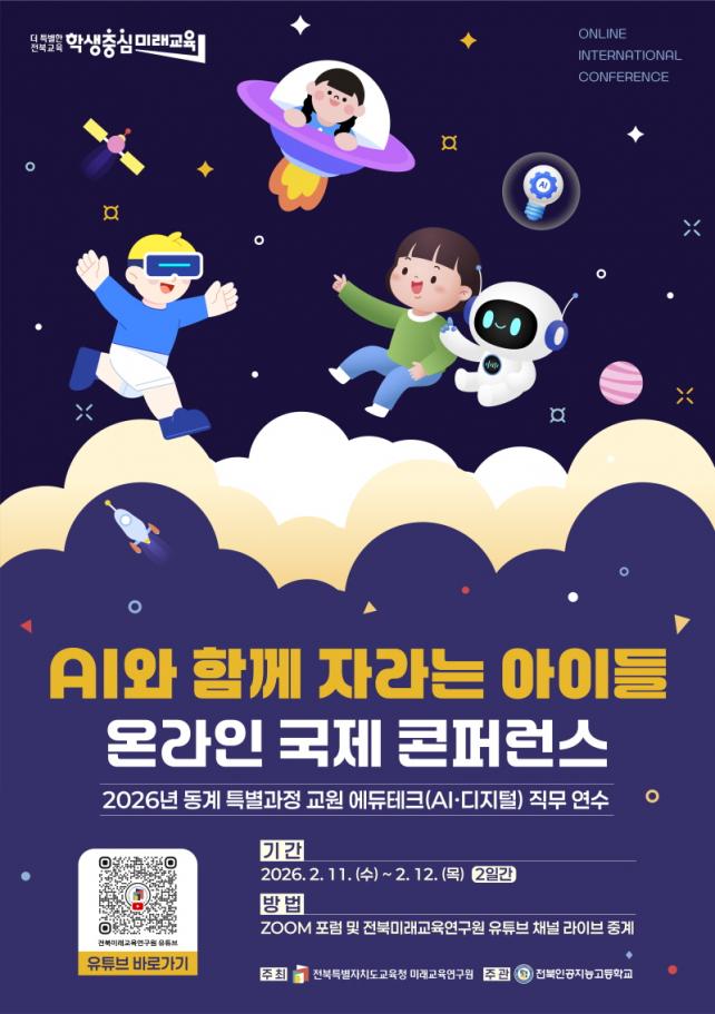 [È£³²´º½º¶óÀÎ = ¼ÀºÈ« ±âÀÚ] ÀüºÏƯº°ÀÚÄ¡µµ±³À°Ã»¹Ì·¡±³À°¿¬±¸¿ø(¿øÀå ±èÁ¤±â)Àº ¿À´Â 2¿ù 11~12ÀÏ ÀÌÆ²°£ ¡ºAI¿Í ÇÔ²² ÀÚ¶ó´Â ¾ÆÀ̵须 ¿Â¶óÀÎ ±¹Á¦ ÄÜÆÛ·±½º¸¦ °³ÃÖÇÑ´Ù°í 23ÀÏ ¹àÇû´Ù.